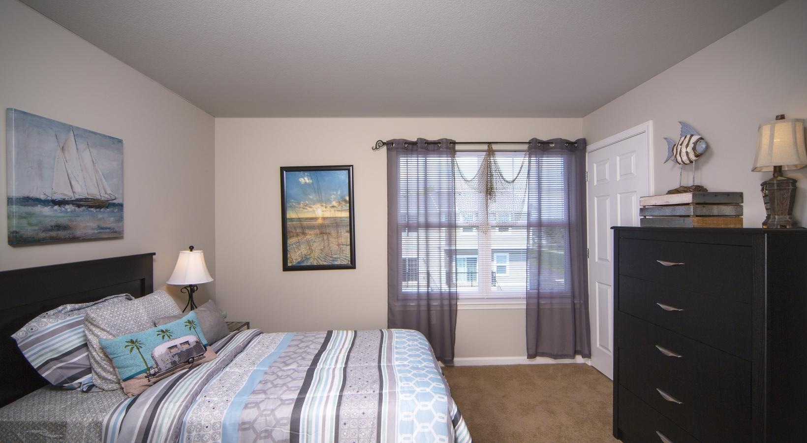 • a bedroom with a bed and a dresser