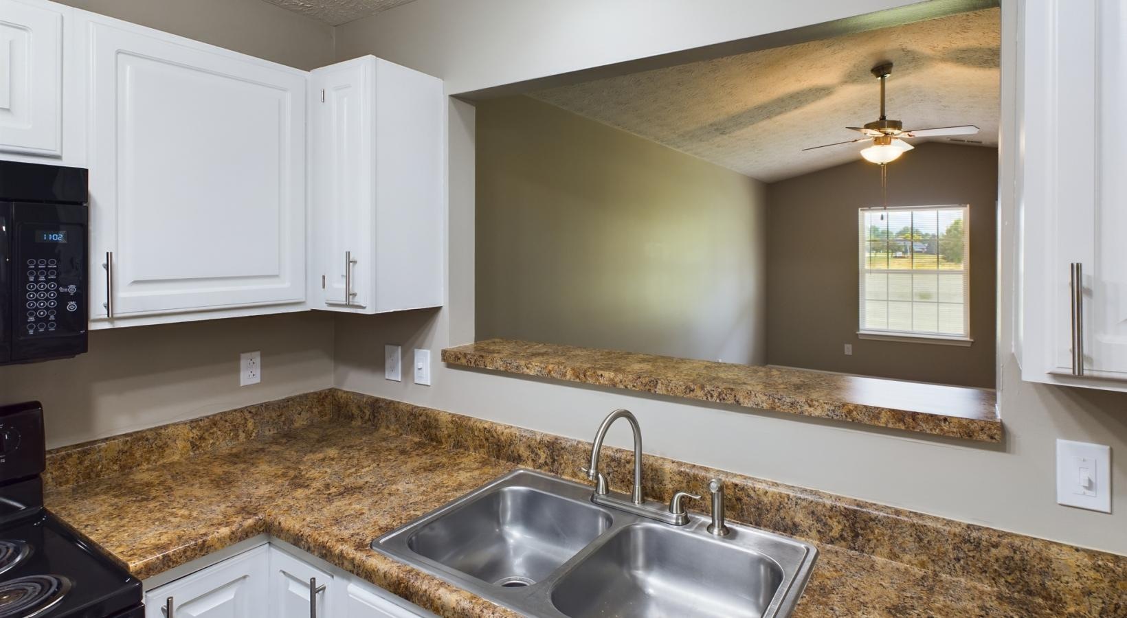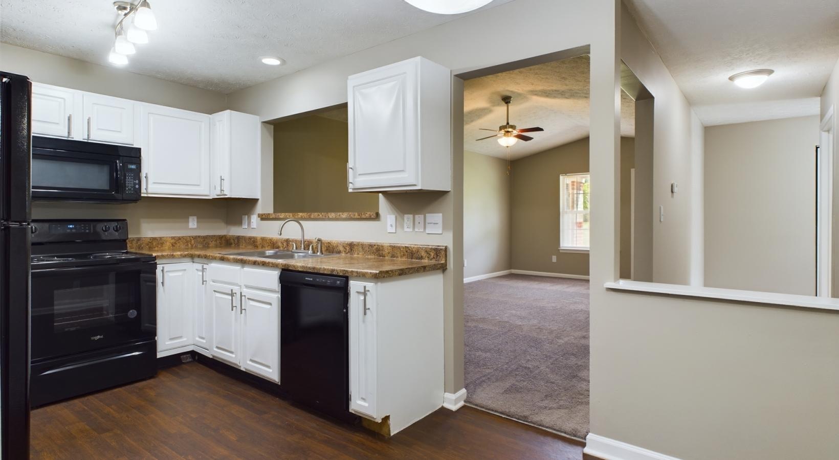 • a kitchen with white cabinets