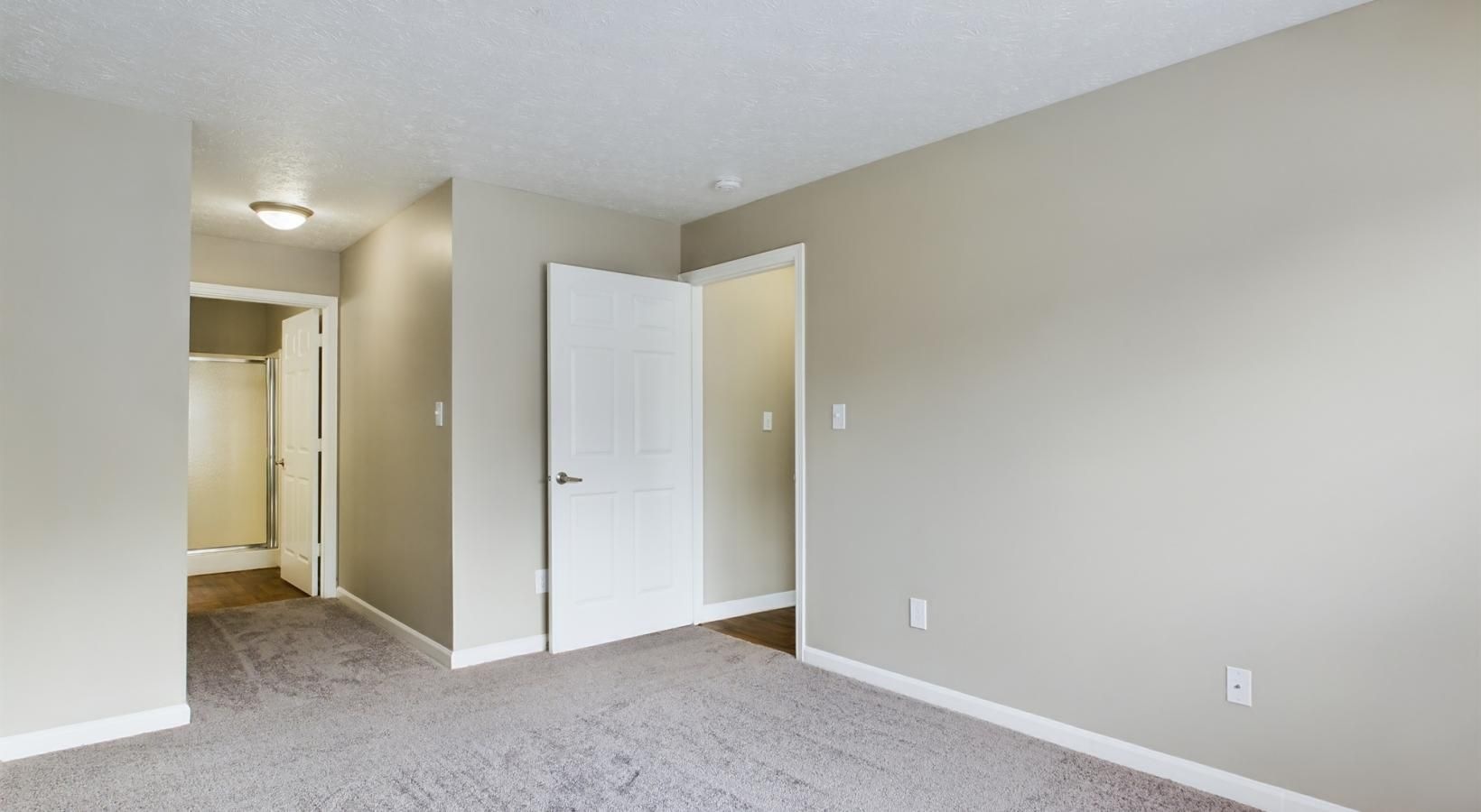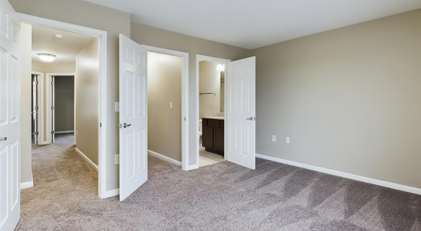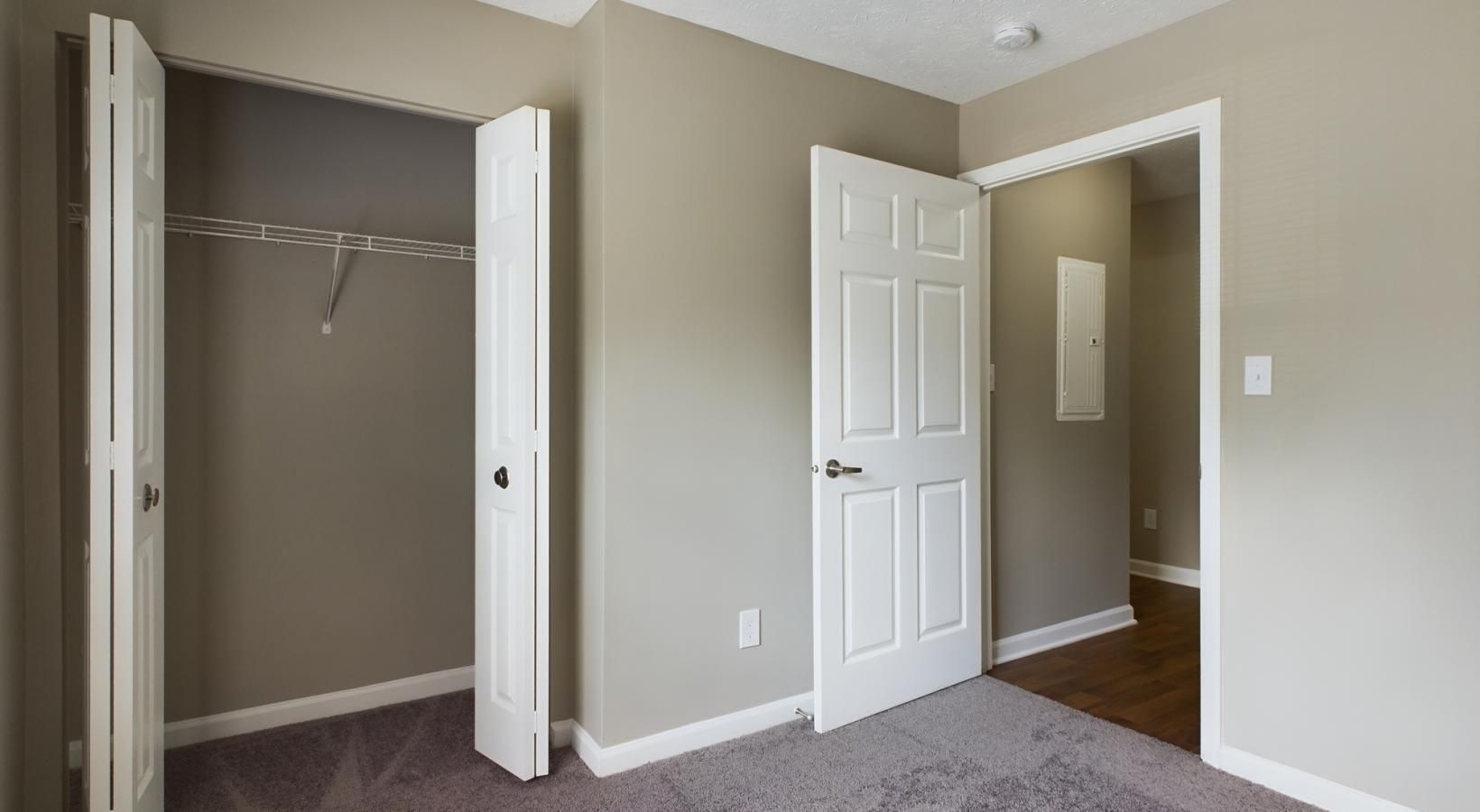 • a bedroom with white doors