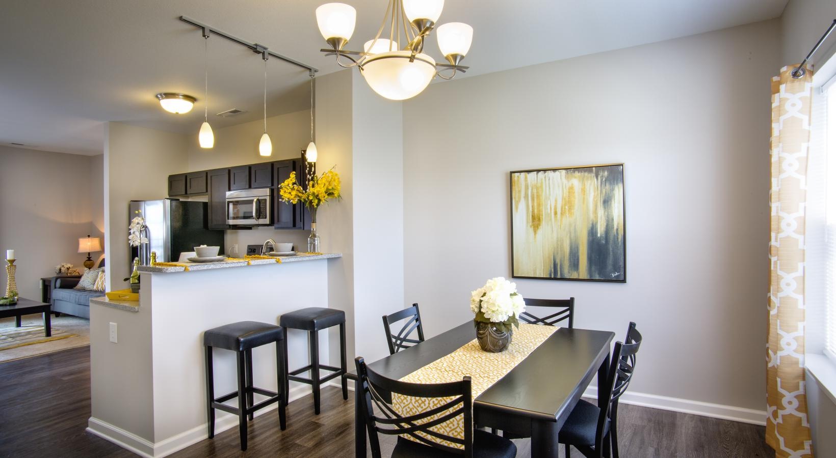 • a kitchen with a dining table and chairs