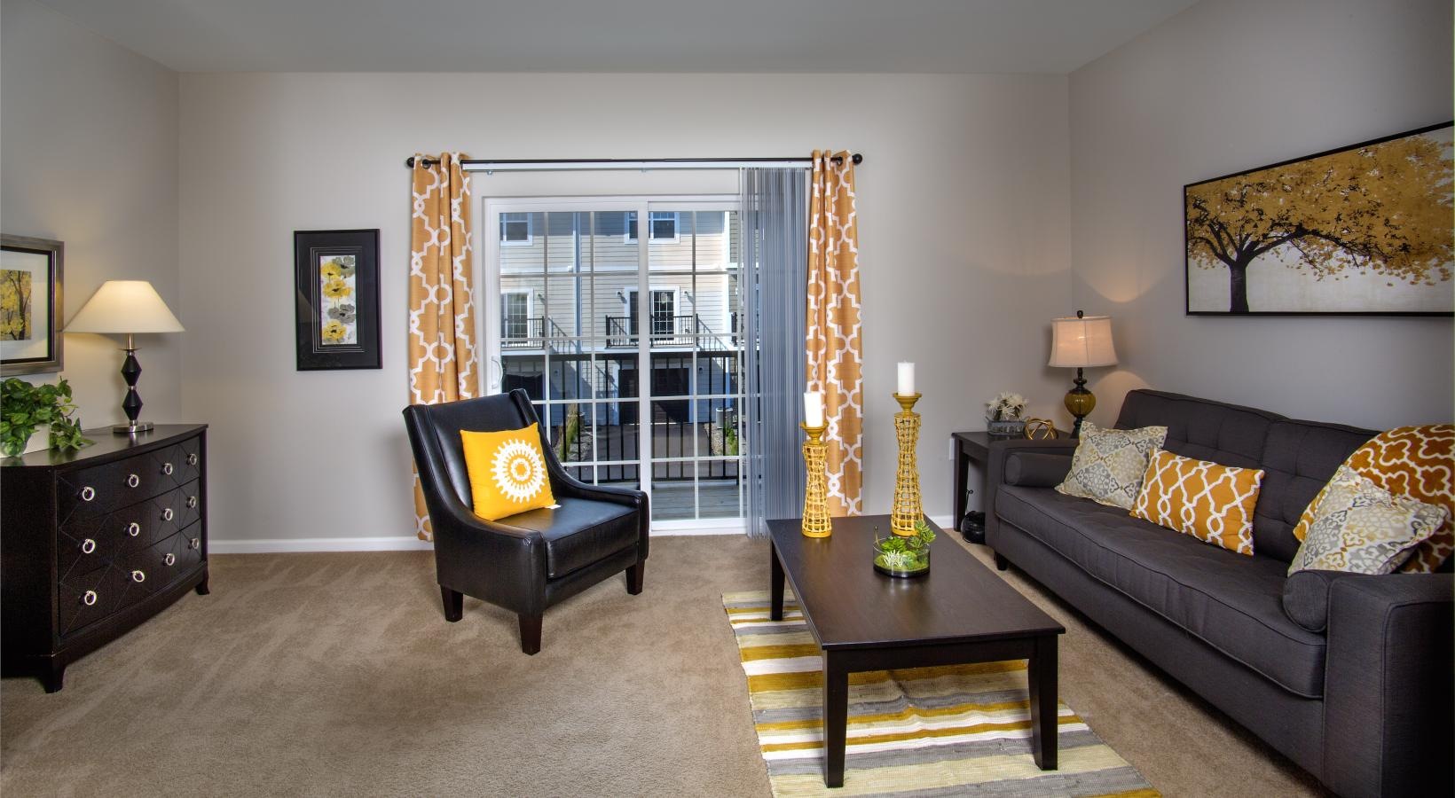 • a living room with a couch and a coffee table